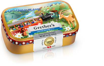 Les nouvelles boîtes dorées Grether’s en édition limitée, au design rétro, célèbrent les emblématiques transports suisses. Qu’elle représente un bus historique ou un bateau à vapeur empreint de nostalgie, chaque boîte raconte une histoire bien à elle et vous fait voyager à travers des pittoresques paysages suisses.